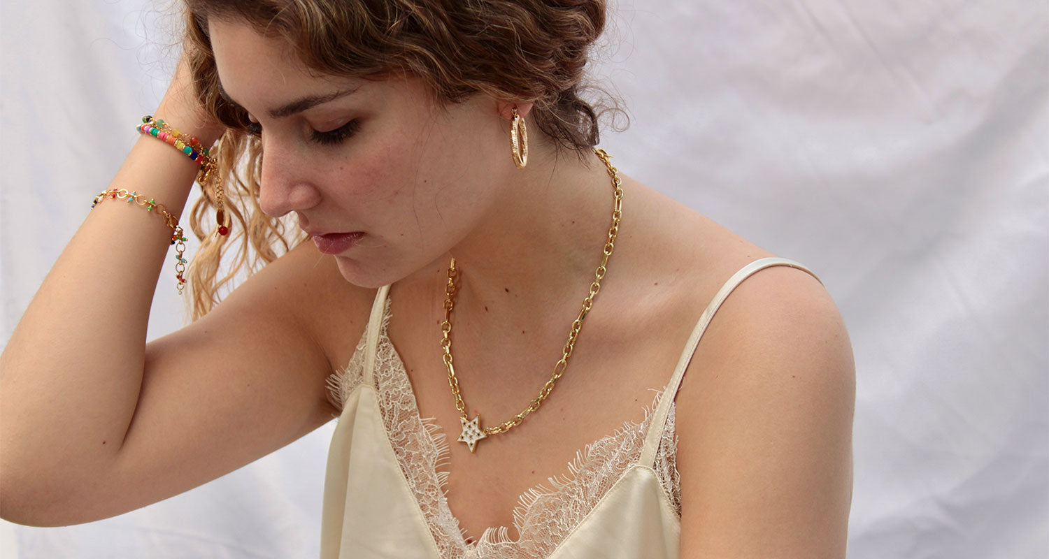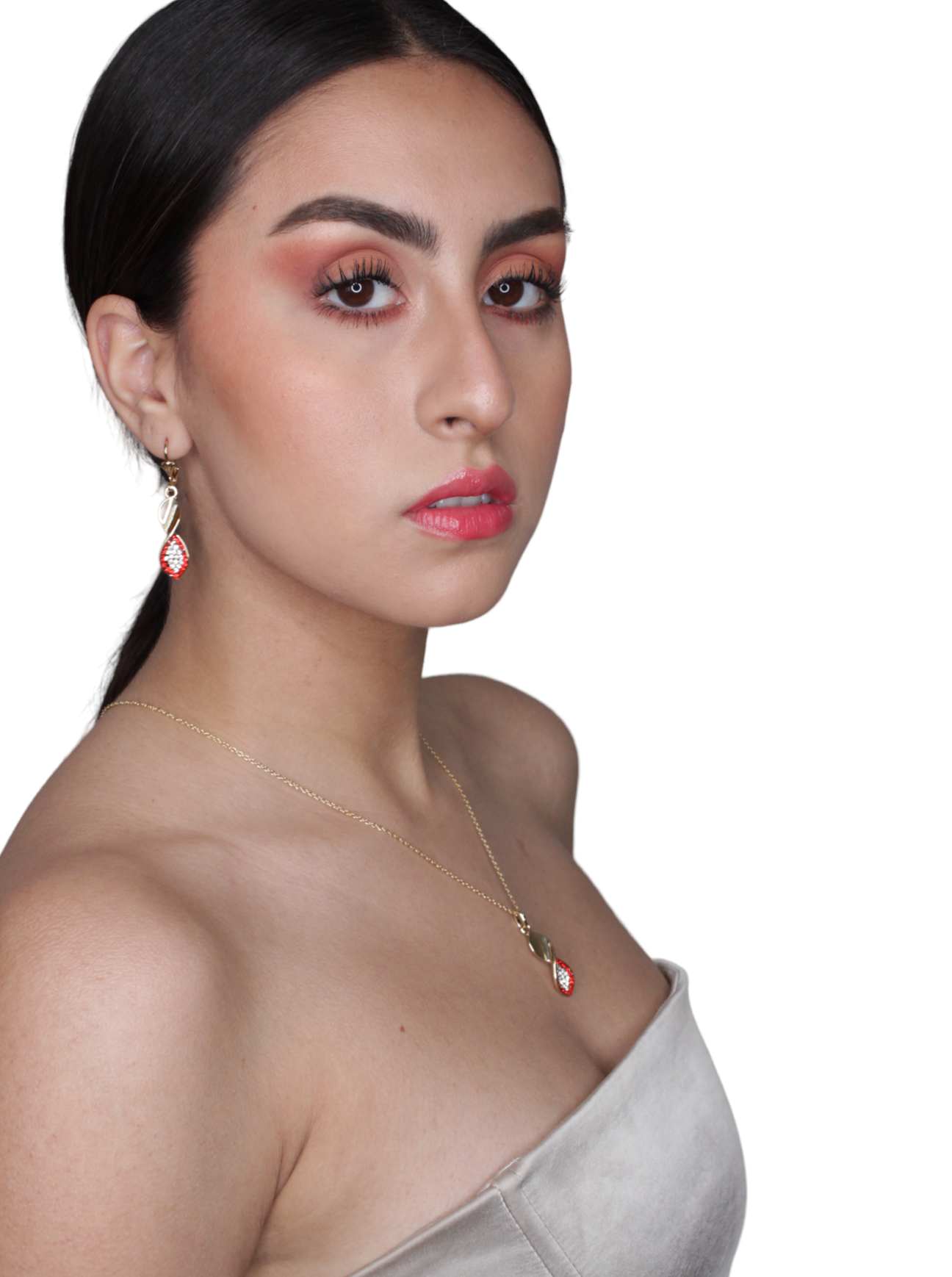 Juego de Collar y Aretes con Zirconias en Chapa de Oro 14k