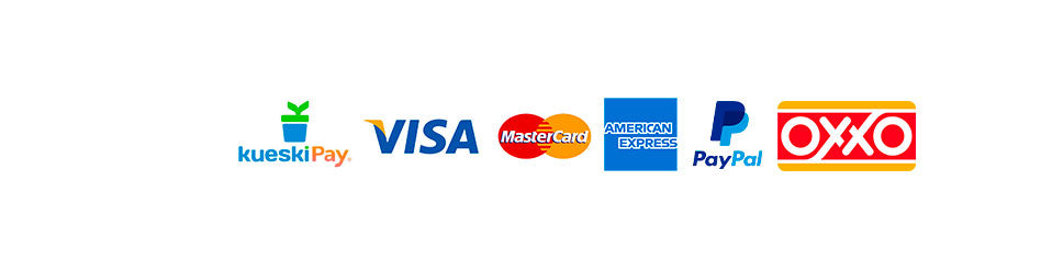 Siéntete seguro pagando con tarjetas Visa, Mastercard, Amex, PayPal, Oxxo o Transferencia Bancaria.